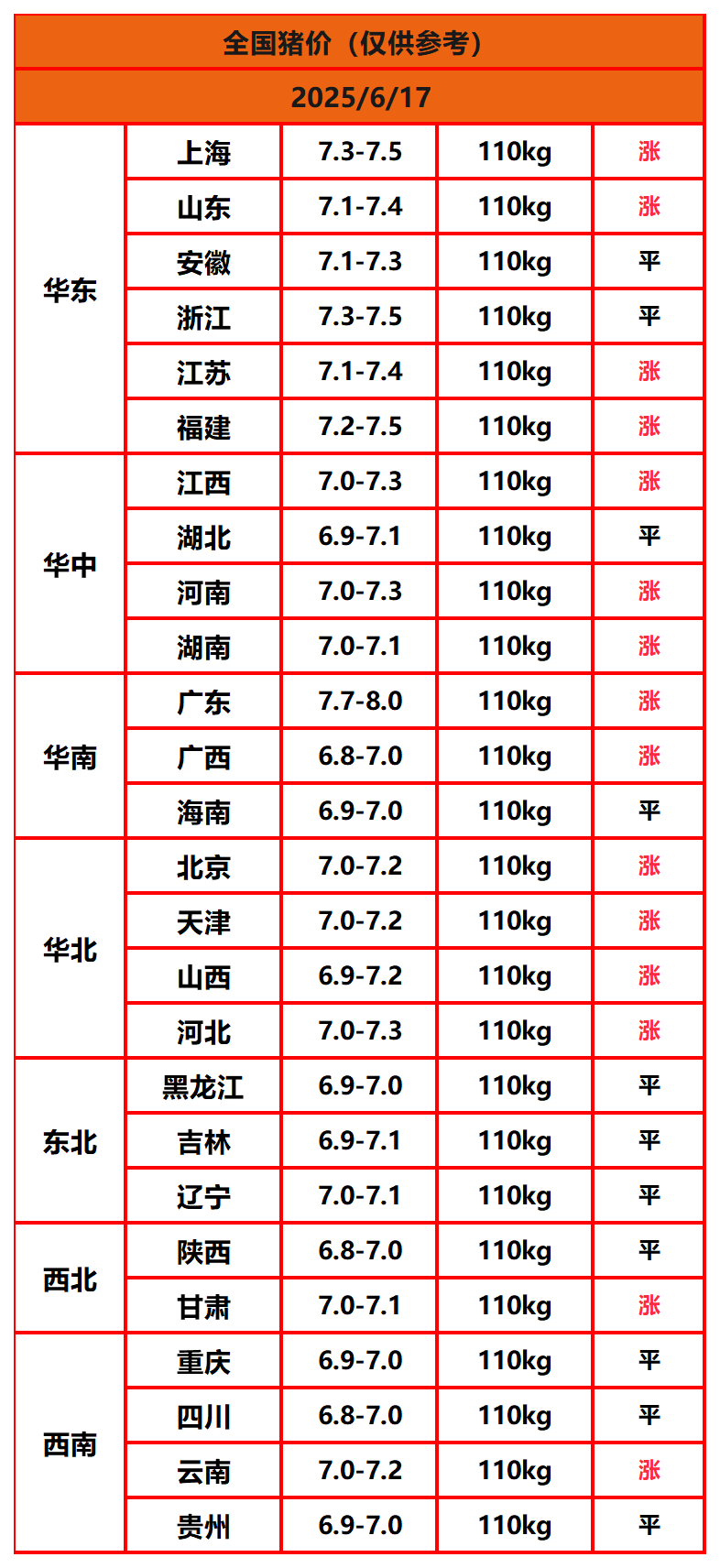 2025年6月17日猪价,今日全国猪价行情走势:15涨11平0跌。