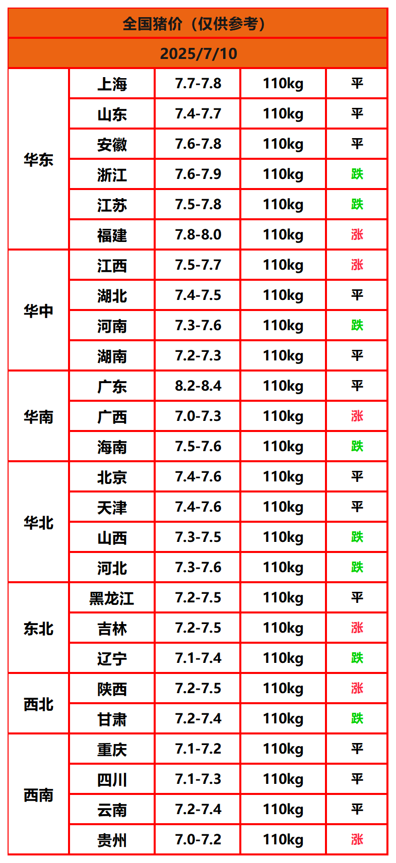 今日猪价 | 2025年7月10日全国猪价行情一览表!