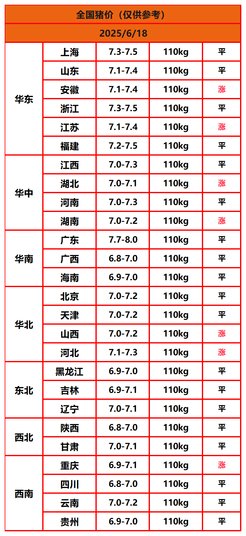 今日猪价 | 2025年6月18日全国猪价行情一览表!