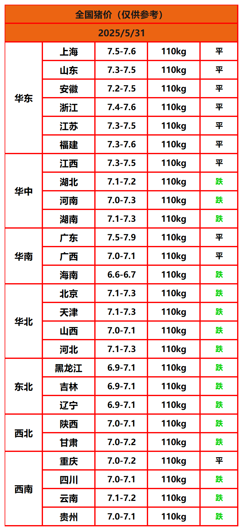 今日猪价 | 2025年5月31日全国猪价行情一览表!
